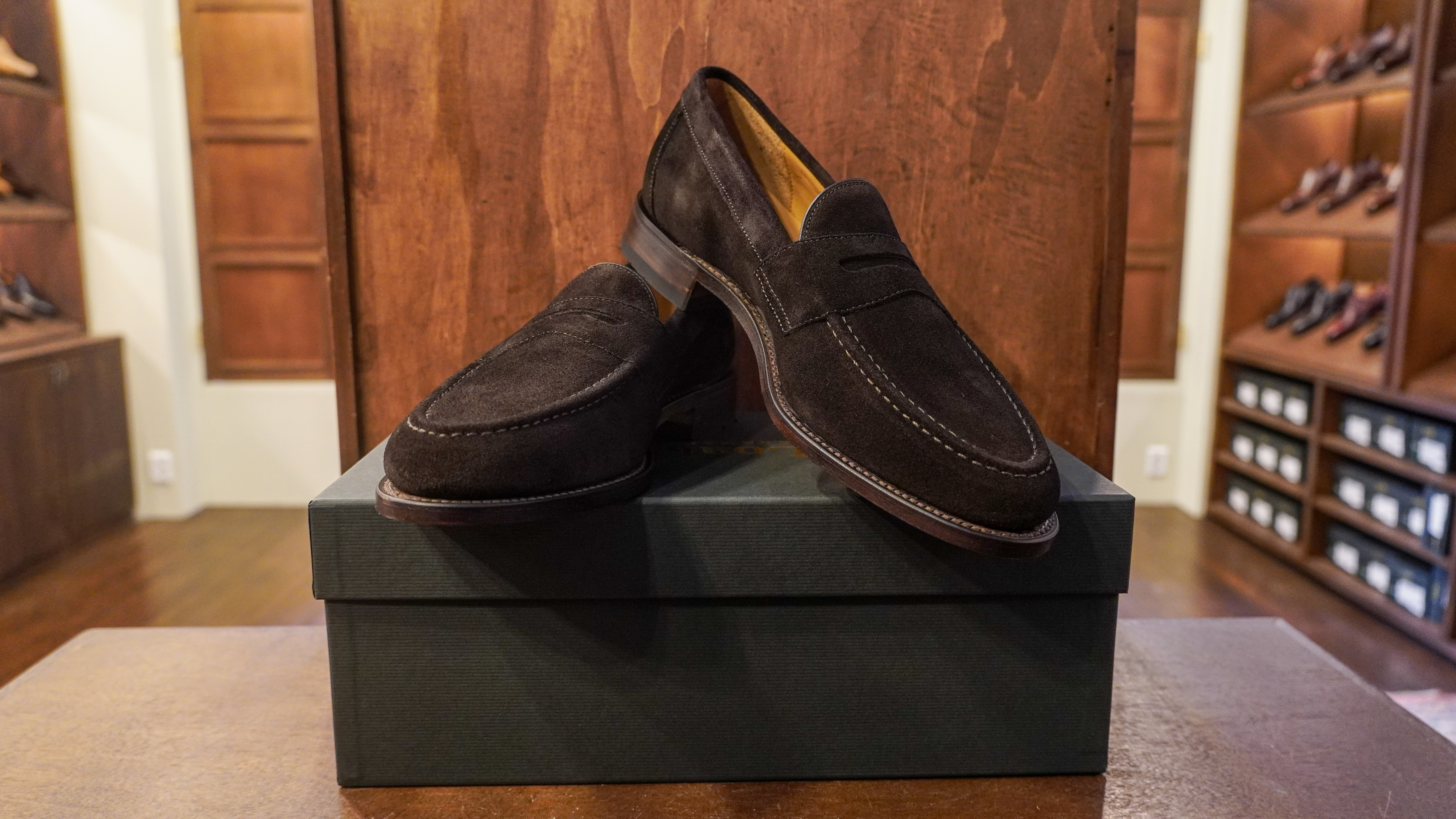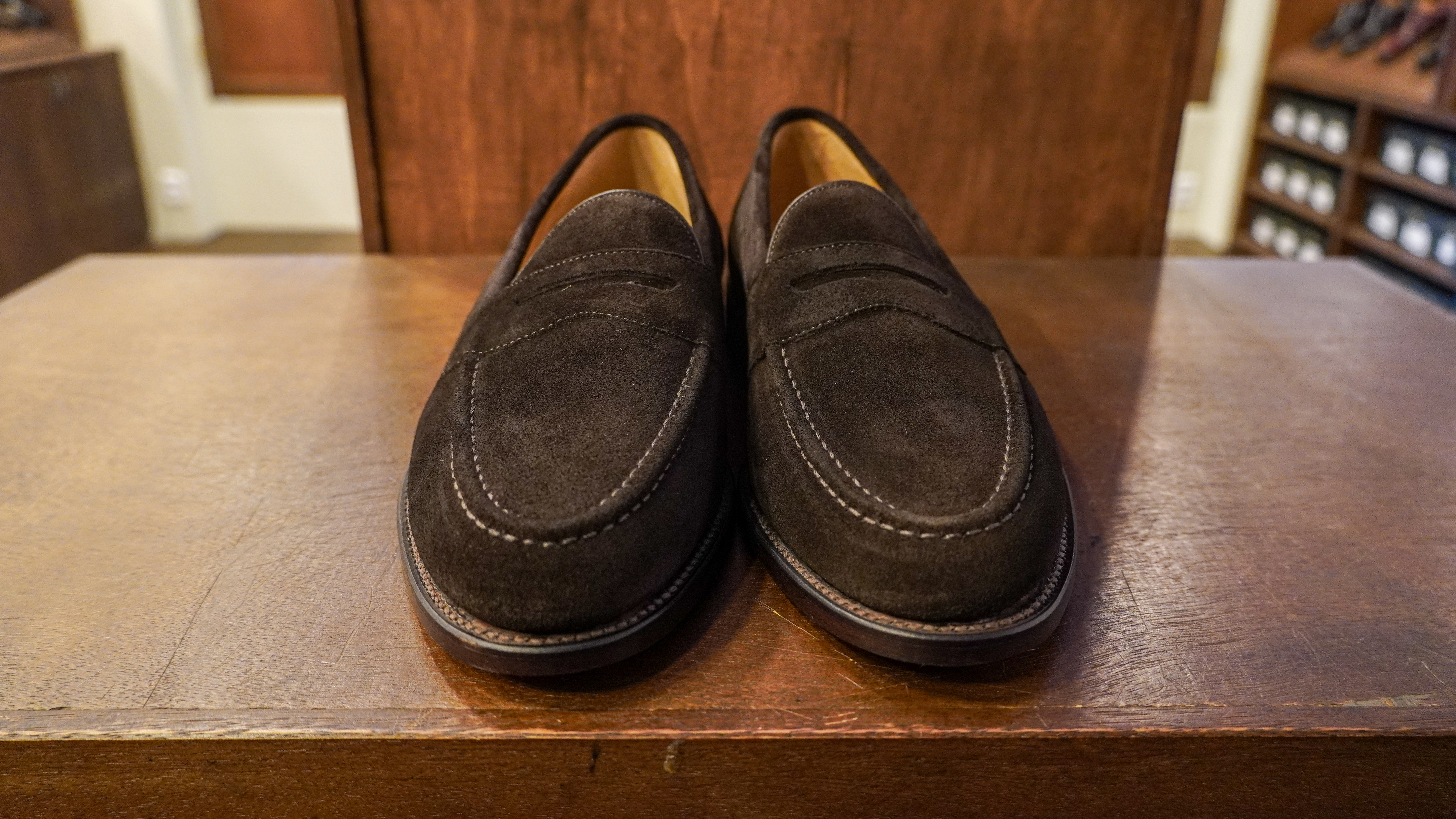 이건 같은 제품의 다른 컬러의 제품입니다. 브라운 스웨이드 제품이죠, 확실히 앞의 사진에 비해 좀 더 연한 느낌이 듭니다. 웰트 부분도 색상이 다릅니다!
