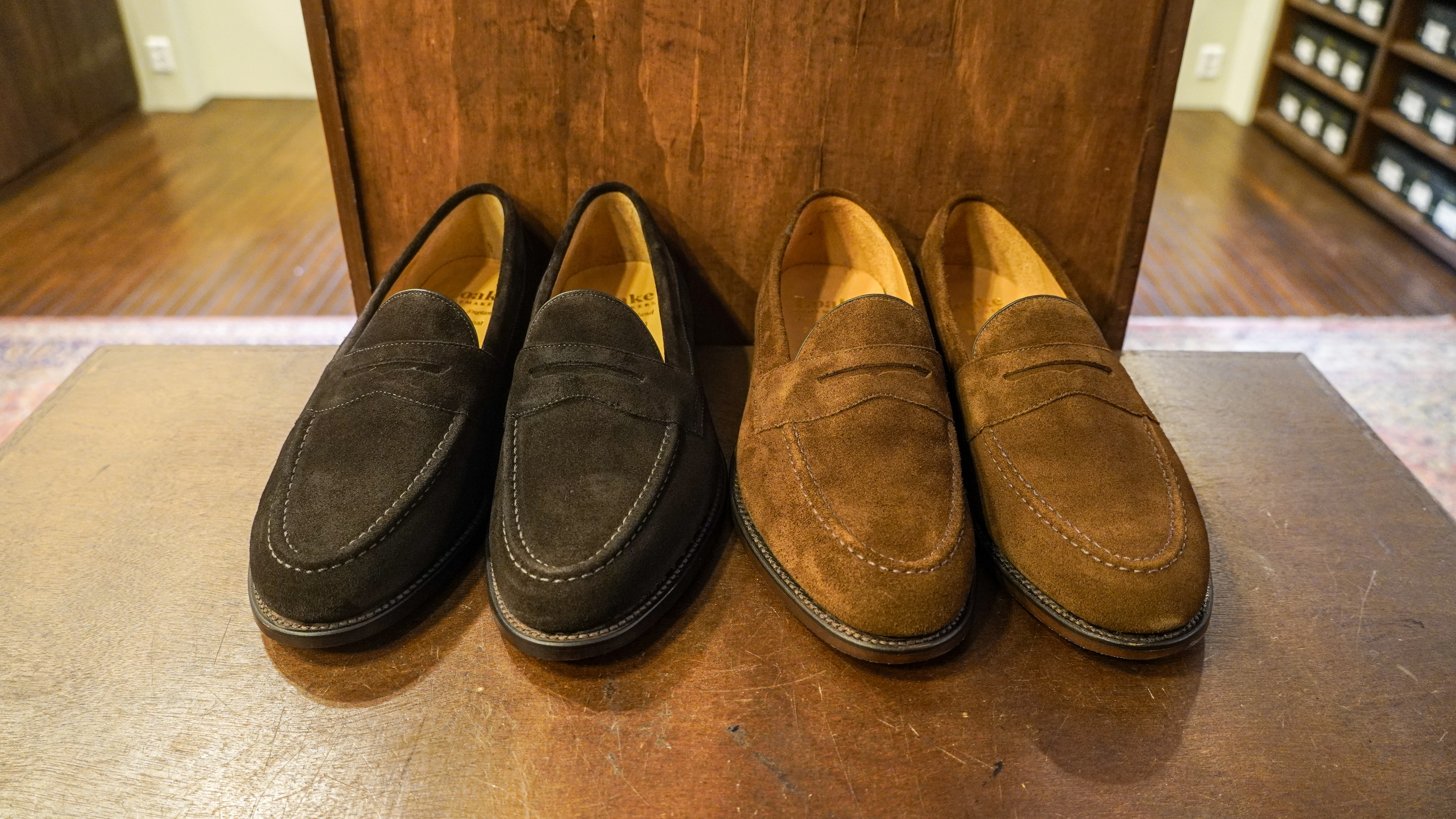 전에 소개해드렸던 이튼과는 사뭇 다른 쉐입의 제품입니다. <임페리얼>은 로크에서 나온 스웨이드 로퍼 제품입니다. 우선 색상은 브라운 스웨이드 제품과 다크브라운 제품으로 나오는 제품입니다. 색상은 이튼의 다크브라운 색상과 동일합니다.
